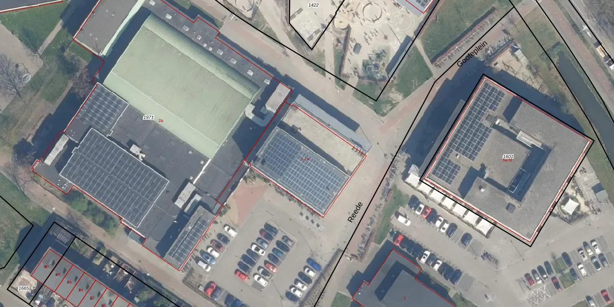 Het perceel waarop Gooteplein 1 staat heeft een oppervlakte van 1,7 ha. Dit is een zeer groot perceel. De perceeloppervlakte wordt geregistreerd door het Kadaster. Gedetailleerde informatie over de maten van dit perceel kunt u vinden in het rapport Kadastrale kaart met maatvoering van Gooteplein 1.