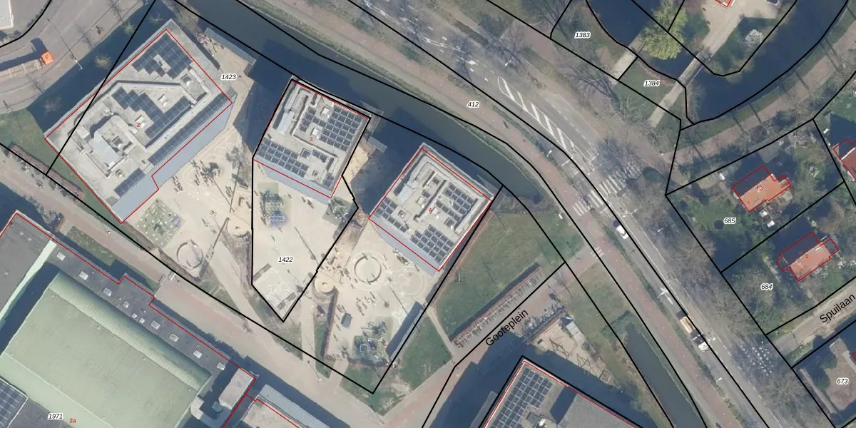 Het perceel waarop Gooteplein 4 staat heeft een oppervlakte van 4024 m². Dit is een zeer groot perceel. De perceeloppervlakte wordt geregistreerd door het Kadaster. Gedetailleerde informatie over de maten van dit perceel kunt u vinden in het rapport Kadastrale kaart met maatvoering van Gooteplein 4.