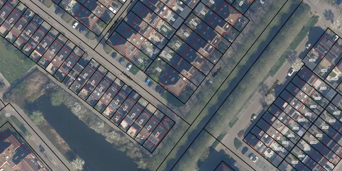 Het perceel waarop Hinder 1 staat heeft een oppervlakte van 375 m². Dit is een groot perceel. De perceeloppervlakte wordt geregistreerd door het Kadaster. Gedetailleerde informatie over de maten van dit perceel kunt u vinden in het rapport Kadastrale kaart met maatvoering van Hinder 1.