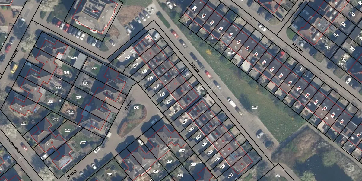 Het perceel waarop Honte 16 staat heeft een oppervlakte van 143 m². Dit is een middelgroot perceel. De perceeloppervlakte wordt geregistreerd door het Kadaster. Gedetailleerde informatie over de maten van dit perceel kunt u vinden in het rapport Kadastrale kaart met maatvoering van Honte 16.