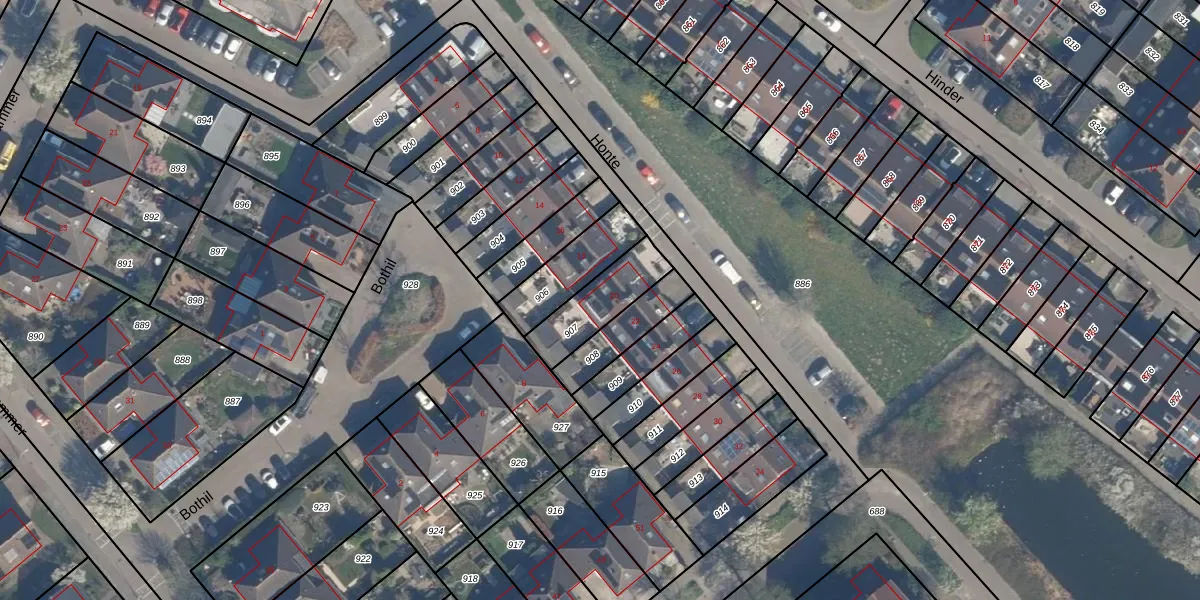 Het perceel waarop Honte 20 staat heeft een oppervlakte van 190 m². Dit is een middelgroot perceel. De perceeloppervlakte wordt geregistreerd door het Kadaster. Gedetailleerde informatie over de maten van dit perceel kunt u vinden in het rapport Kadastrale kaart met maatvoering van Honte 20.