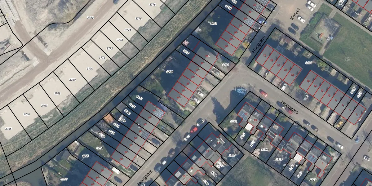Het perceel waarop Hoogaars 38 staat heeft een oppervlakte van 830 m². Dit is een groot perceel. De perceeloppervlakte wordt geregistreerd door het Kadaster. Gedetailleerde informatie over de maten van dit perceel kunt u vinden in het rapport Kadastrale kaart met maatvoering van Hoogaars 38.