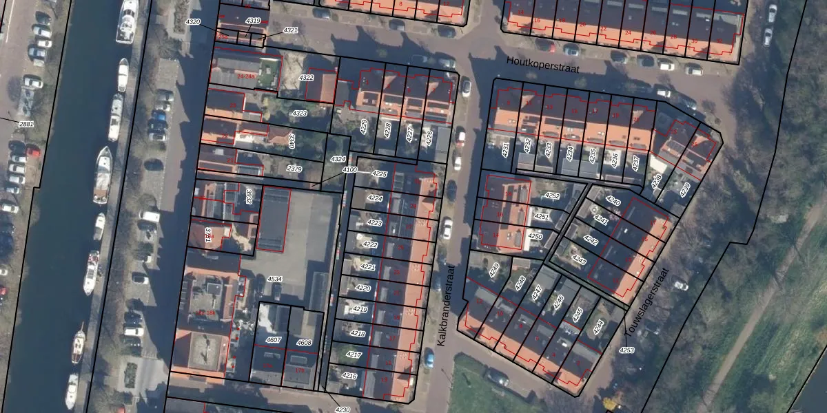 Gebruik de zoekbalk of klik op een perceel voor informatie over de adressen binnen dit perceel.