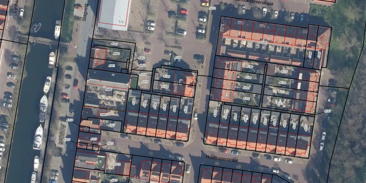 Gebruik de zoekbalk of klik op een perceel voor informatie over de adressen binnen dit perceel.