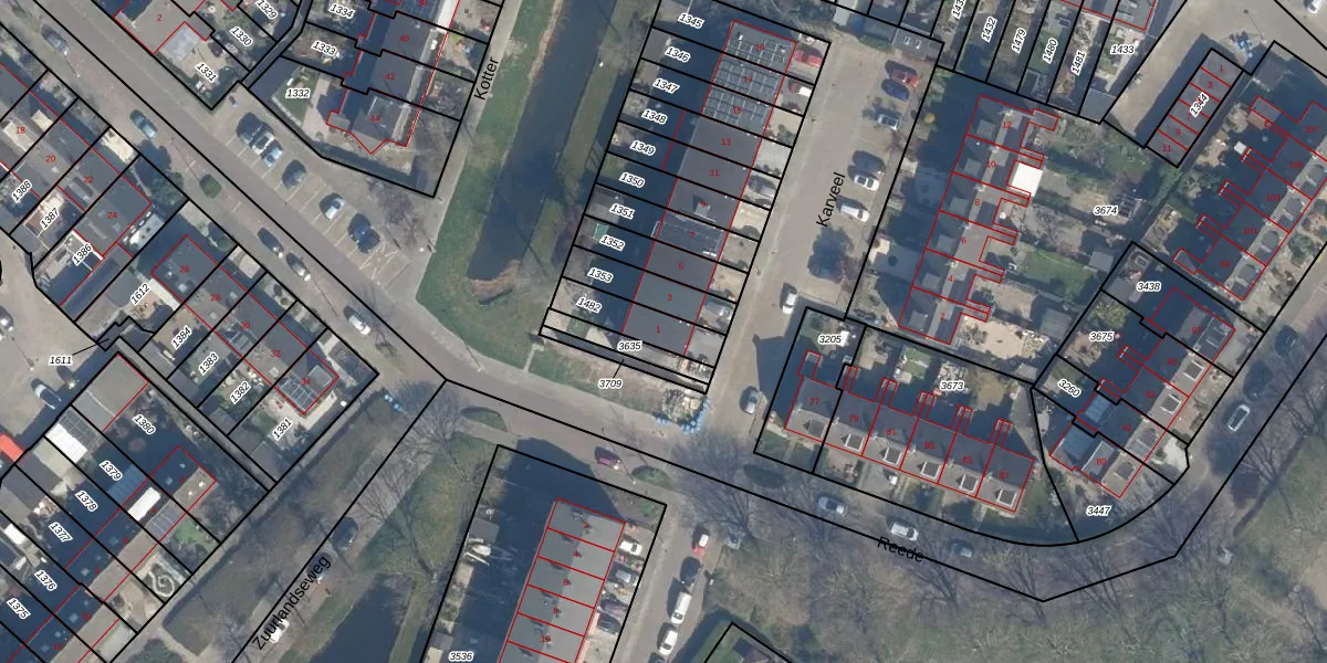 Gebruik de zoekbalk of klik op een perceel voor informatie over de adressen binnen dit perceel.