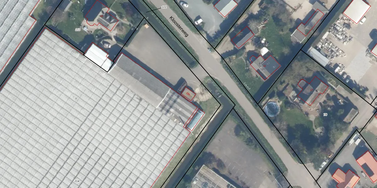 Het perceel waarop Kloosterweg 18-b staat heeft een oppervlakte van 2,6 ha. Dit is een zeer groot perceel. De perceeloppervlakte wordt geregistreerd door het Kadaster. Gedetailleerde informatie over de maten van dit perceel kunt u vinden in het rapport Kadastrale kaart met maatvoering van Kloosterweg 18-b.