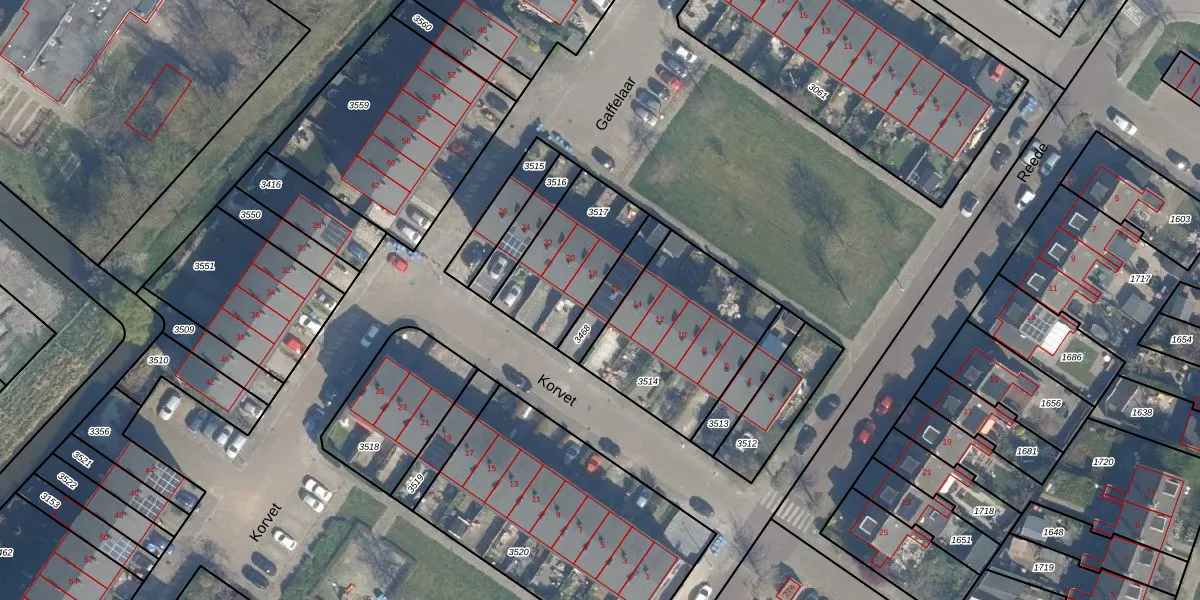 Het perceel waarop Korvet 16 staat heeft een oppervlakte van 123 m². Dit is een middelgroot perceel. De perceeloppervlakte wordt geregistreerd door het Kadaster. Gedetailleerde informatie over de maten van dit perceel kunt u vinden in het rapport Kadastrale kaart met maatvoering van Korvet 16.
