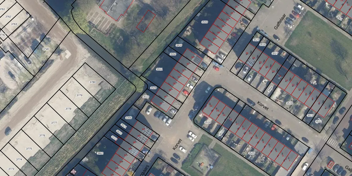 Het perceel waarop Korvet 36 staat heeft een oppervlakte van 492 m². Dit is een groot perceel. De perceeloppervlakte wordt geregistreerd door het Kadaster. Gedetailleerde informatie over de maten van dit perceel kunt u vinden in het rapport Kadastrale kaart met maatvoering van Korvet 36.