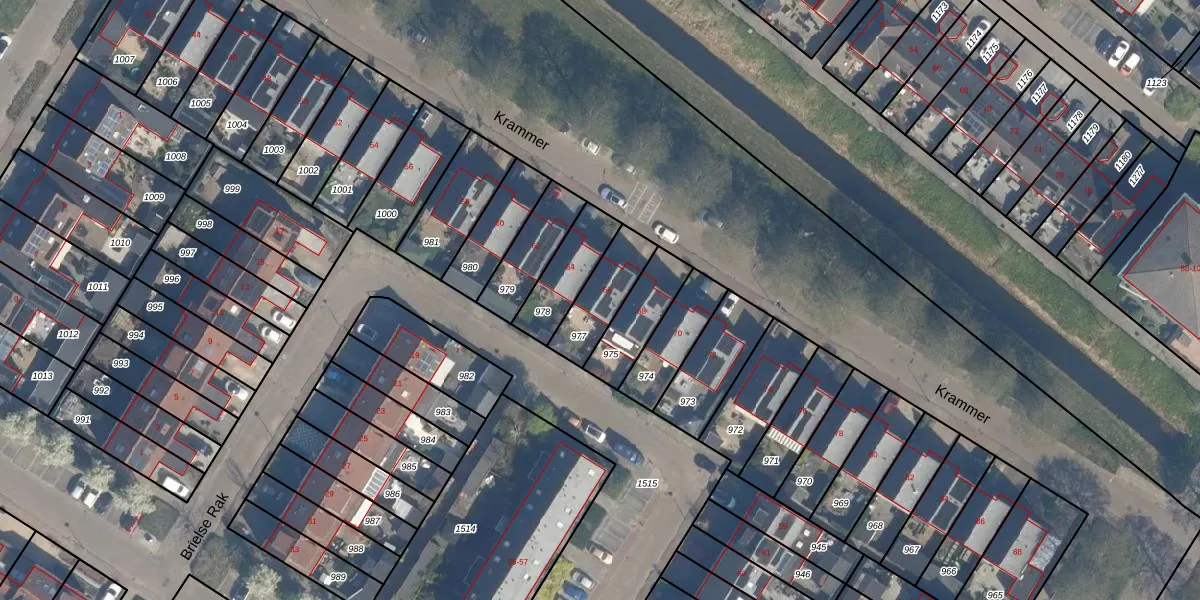 Het perceel waarop Krammer 66 staat heeft een oppervlakte van 168 m². Dit is een middelgroot perceel. De perceeloppervlakte wordt geregistreerd door het Kadaster. Gedetailleerde informatie over de maten van dit perceel kunt u vinden in het rapport Kadastrale kaart met maatvoering van Krammer 66.