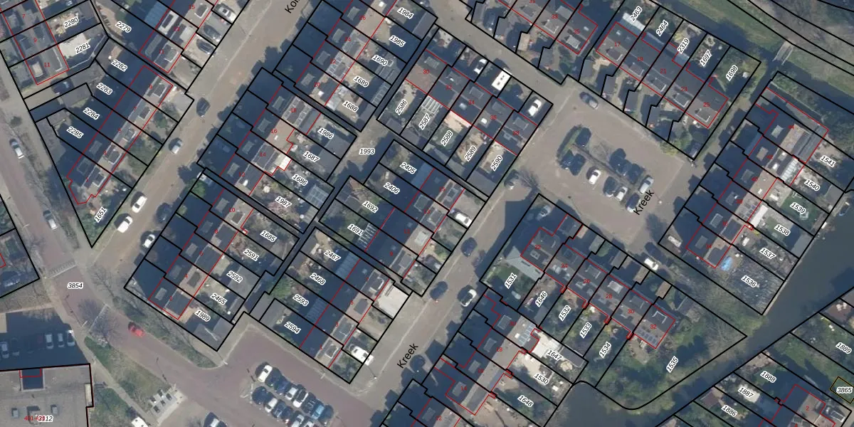 Het perceel waarop Kreek 13 staat heeft een oppervlakte van 179 m². Dit is een middelgroot perceel. De perceeloppervlakte wordt geregistreerd door het Kadaster. Gedetailleerde informatie over de maten van dit perceel kunt u vinden in het rapport Kadastrale kaart met maatvoering van Kreek 13.
