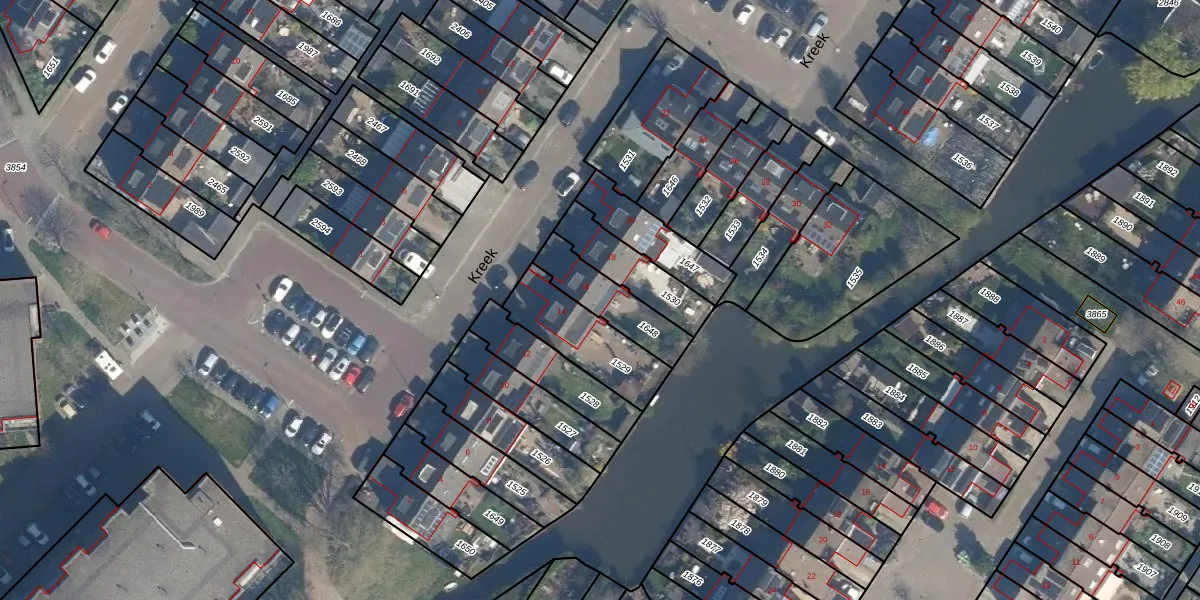 Het perceel waarop Kreek 16 staat heeft een oppervlakte van 184 m². Dit is een middelgroot perceel. De perceeloppervlakte wordt geregistreerd door het Kadaster. Gedetailleerde informatie over de maten van dit perceel kunt u vinden in het rapport Kadastrale kaart met maatvoering van Kreek 16.