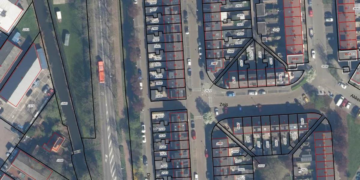 Gebruik de zoekbalk of klik op een perceel voor informatie over de adressen binnen dit perceel.