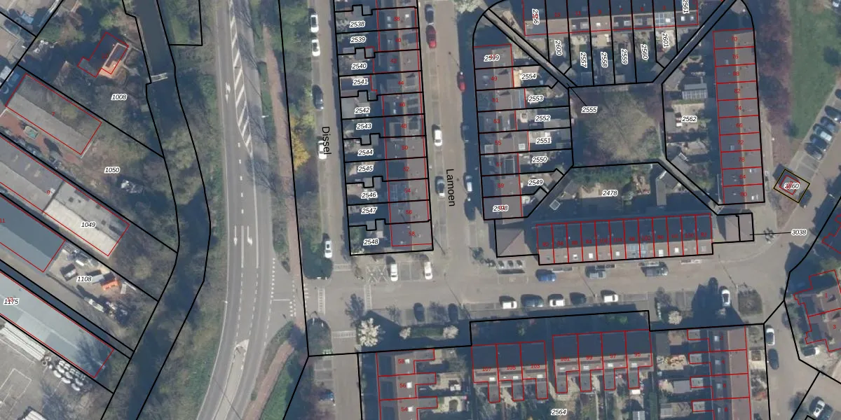 Gebruik de zoekbalk of klik op een perceel voor informatie over de adressen binnen dit perceel.