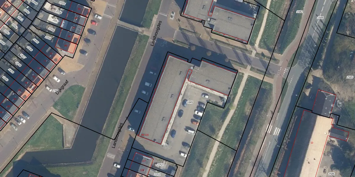 Het perceel waarop Landvoogdes 109 staat heeft een oppervlakte van 2061 m². Dit is een zeer groot perceel. De perceeloppervlakte wordt geregistreerd door het Kadaster. Gedetailleerde informatie over de maten van dit perceel kunt u vinden in het rapport Kadastrale kaart met maatvoering van Landvoogdes 109.