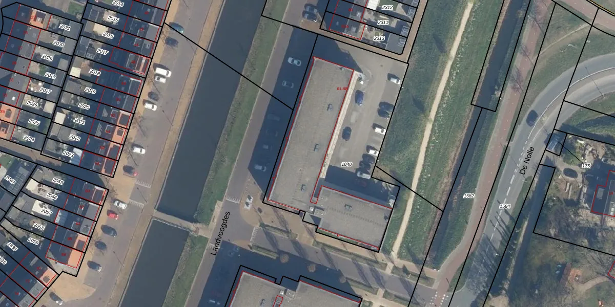 Het perceel waarop Landvoogdes 62 staat heeft een oppervlakte van 2061 m². Dit is een zeer groot perceel. De perceeloppervlakte wordt geregistreerd door het Kadaster. Gedetailleerde informatie over de maten van dit perceel kunt u vinden in het rapport Kadastrale kaart met maatvoering van Landvoogdes 62.