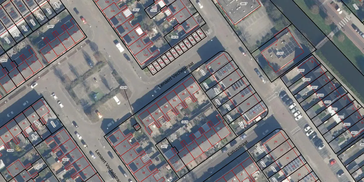 Het perceel waarop Lenaert Vechelstraat 86 staat heeft een oppervlakte van 2385 m². Dit is een zeer groot perceel. De perceeloppervlakte wordt geregistreerd door het Kadaster. Gedetailleerde informatie over de maten van dit perceel kunt u vinden in het rapport Kadastrale kaart met maatvoering van Lenaert Vechelstraat 86.