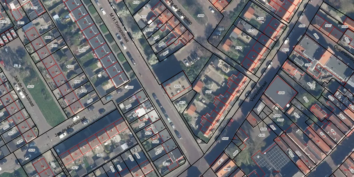 Het perceel waarop M H Trompstraat 16 staat heeft een oppervlakte van 174 m². Dit is een middelgroot perceel. De perceeloppervlakte wordt geregistreerd door het Kadaster. Gedetailleerde informatie over de maten van dit perceel kunt u vinden in het rapport Kadastrale kaart met maatvoering van M H Trompstraat 16.