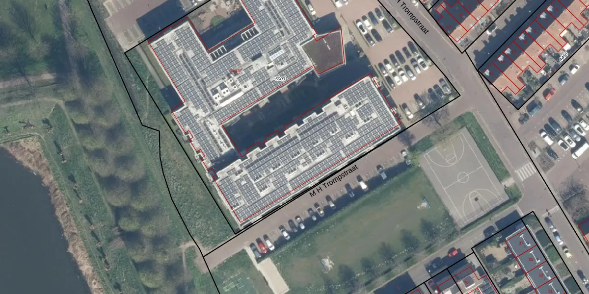 M H Trompstraat 45 is gelegen op kadastraal perceel BLE02B5003. Deze kadastrale aanduiding is uniek en wordt gebruikt door het Kadaster om eigendomsrechten en andere zakelijke rechten vast te leggen. Het perceel maakt onderdeel uit van de kadastrale gemeente Brielle.