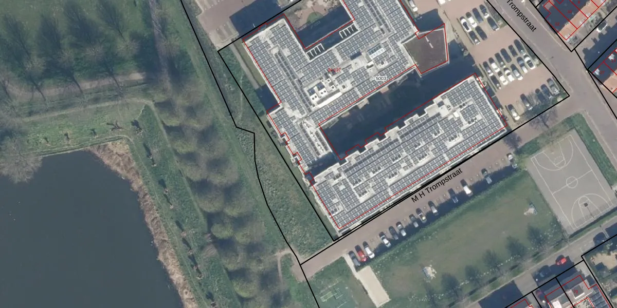 Het perceel waarop M H Trompstraat 89 staat heeft een oppervlakte van 6110 m². Dit is een zeer groot perceel. De perceeloppervlakte wordt geregistreerd door het Kadaster. Gedetailleerde informatie over de maten van dit perceel kunt u vinden in het rapport Kadastrale kaart met maatvoering van M H Trompstraat 89.