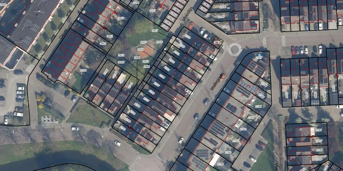 Gebruik de zoekbalk of klik op een perceel voor informatie over de adressen binnen dit perceel.