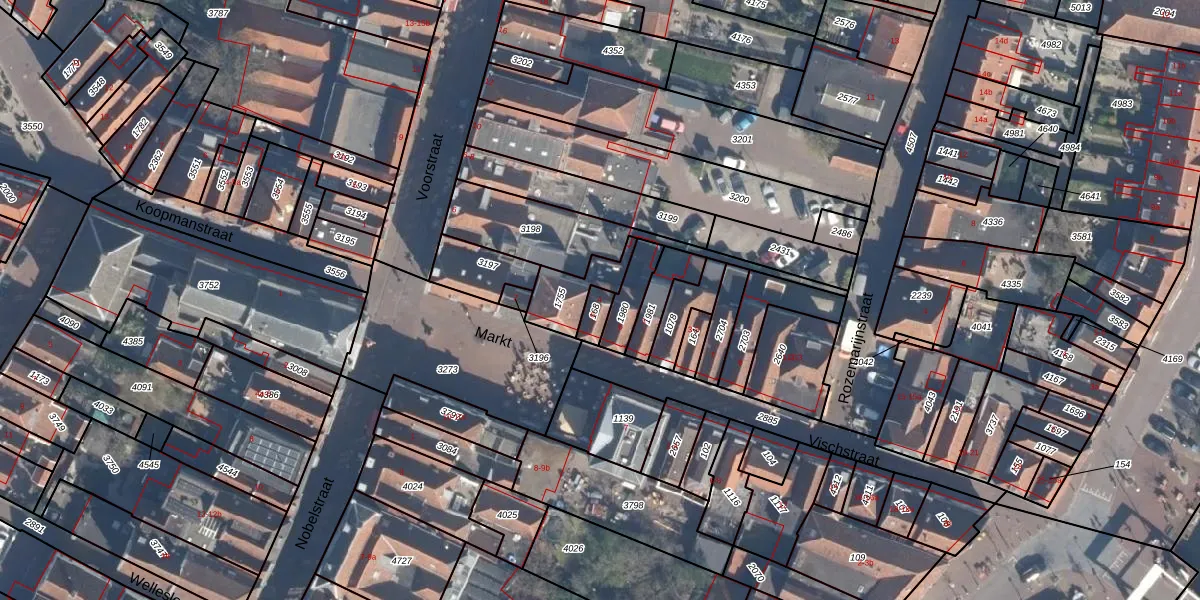 Het perceel waarop Markt 4 staat heeft een oppervlakte van 39 m². Dit is een klein perceel. De perceeloppervlakte wordt geregistreerd door het Kadaster. Gedetailleerde informatie over de maten van dit perceel kunt u vinden in het rapport Kadastrale kaart met maatvoering van Markt 4.