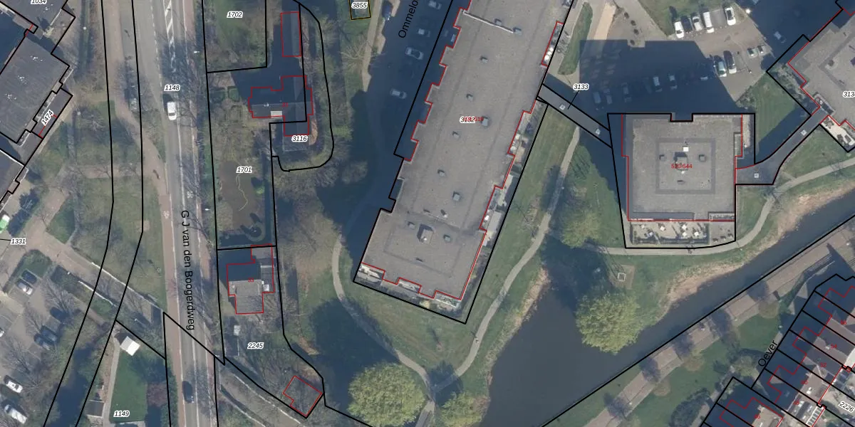 Het perceel waarop Ommeloop 483 staat heeft een oppervlakte van 2425 m². Dit is een zeer groot perceel. De perceeloppervlakte wordt geregistreerd door het Kadaster. Gedetailleerde informatie over de maten van dit perceel kunt u vinden in het rapport Kadastrale kaart met maatvoering van Ommeloop 483.