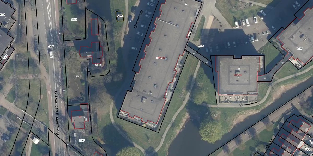 Het perceel waarop Ommeloop 512 staat heeft een oppervlakte van 2425 m². Dit is een zeer groot perceel. De perceeloppervlakte wordt geregistreerd door het Kadaster. Gedetailleerde informatie over de maten van dit perceel kunt u vinden in het rapport Kadastrale kaart met maatvoering van Ommeloop 512.