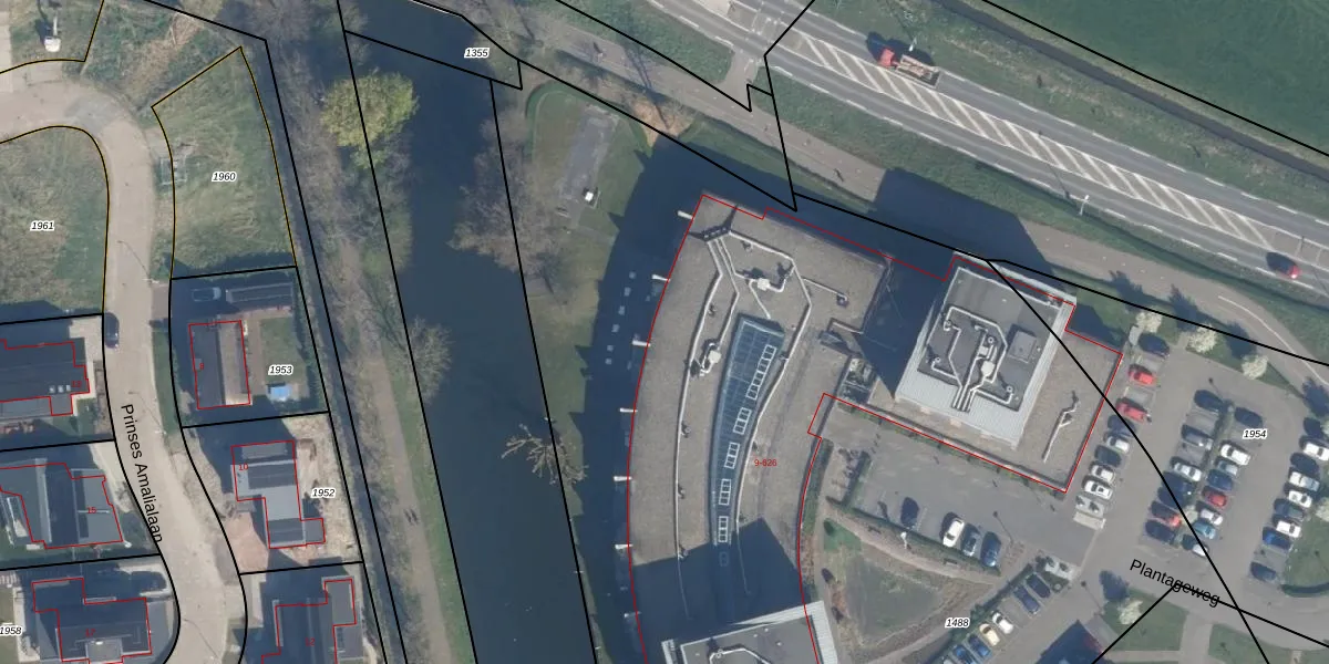 Het perceel waarop Plantageweg 28 staat heeft een oppervlakte van 8320 m². Dit is een zeer groot perceel. De perceeloppervlakte wordt geregistreerd door het Kadaster. Gedetailleerde informatie over de maten van dit perceel kunt u vinden in het rapport Kadastrale kaart met maatvoering van Plantageweg 28.