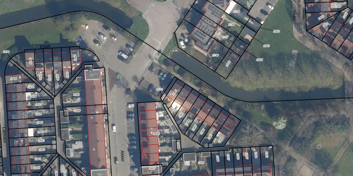 Het perceel waarop Ploeg 2 staat heeft een oppervlakte van 87 m². Dit is een klein perceel. De perceeloppervlakte wordt geregistreerd door het Kadaster. Gedetailleerde informatie over de maten van dit perceel kunt u vinden in het rapport Kadastrale kaart met maatvoering van Ploeg 2.