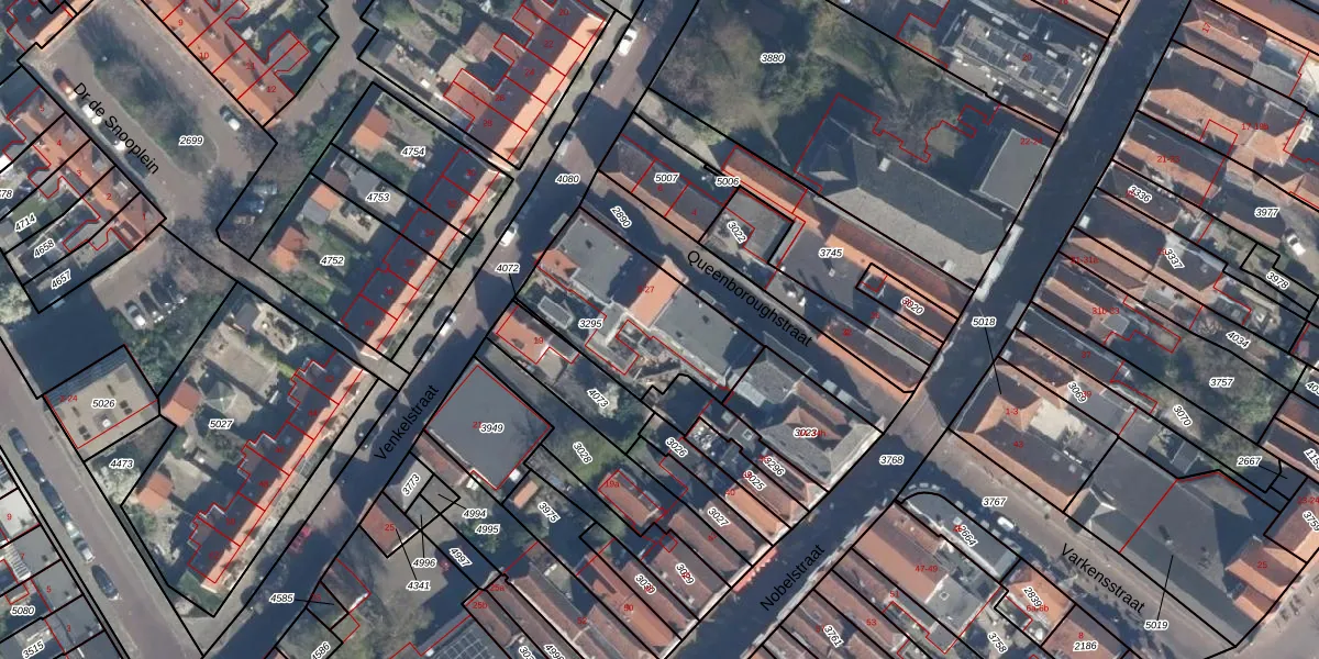 Het perceel waarop Queenboroughstraat 15 staat heeft een oppervlakte van 566 m². Dit is een groot perceel. De perceeloppervlakte wordt geregistreerd door het Kadaster. Gedetailleerde informatie over de maten van dit perceel kunt u vinden in het rapport Kadastrale kaart met maatvoering van Queenboroughstraat 15.