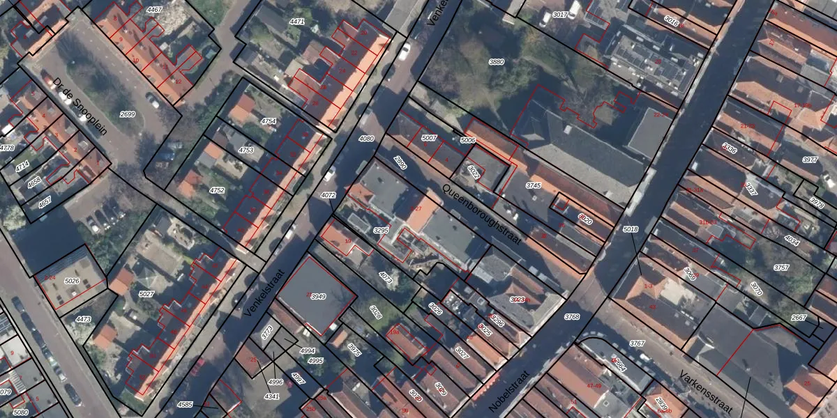 Het perceel waarop Queenboroughstraat 21 staat heeft een oppervlakte van 566 m². Dit is een groot perceel. De perceeloppervlakte wordt geregistreerd door het Kadaster. Gedetailleerde informatie over de maten van dit perceel kunt u vinden in het rapport Kadastrale kaart met maatvoering van Queenboroughstraat 21.