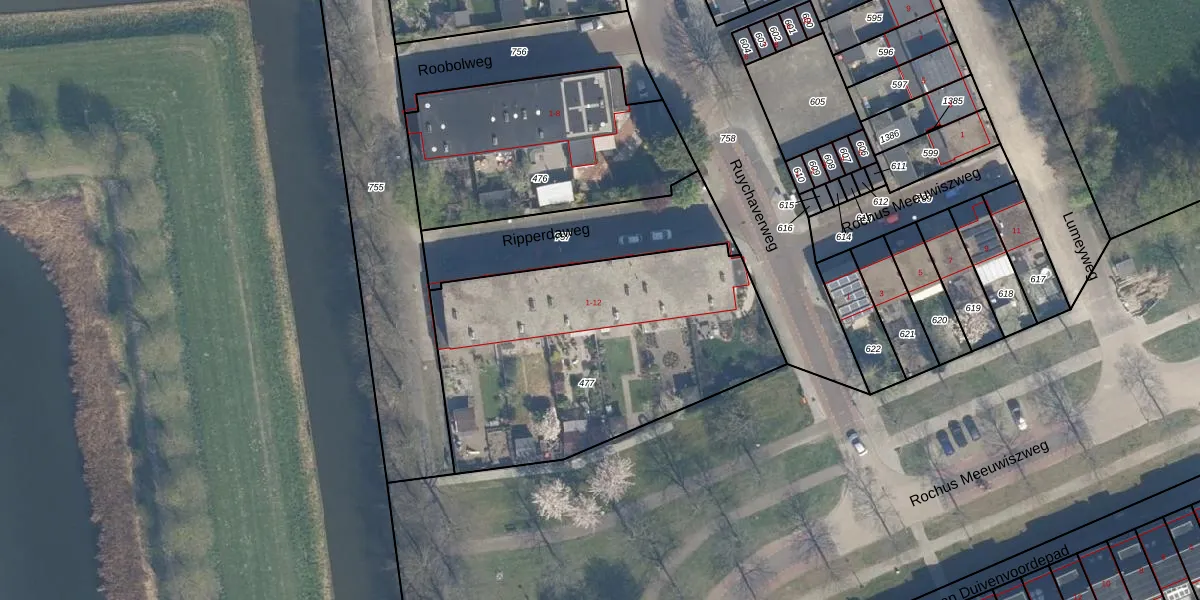Het perceel waarop Ripperdaweg 8 staat heeft een oppervlakte van 1575 m². Dit is een zeer groot perceel. De perceeloppervlakte wordt geregistreerd door het Kadaster. Gedetailleerde informatie over de maten van dit perceel kunt u vinden in het rapport Kadastrale kaart met maatvoering van Ripperdaweg 8.