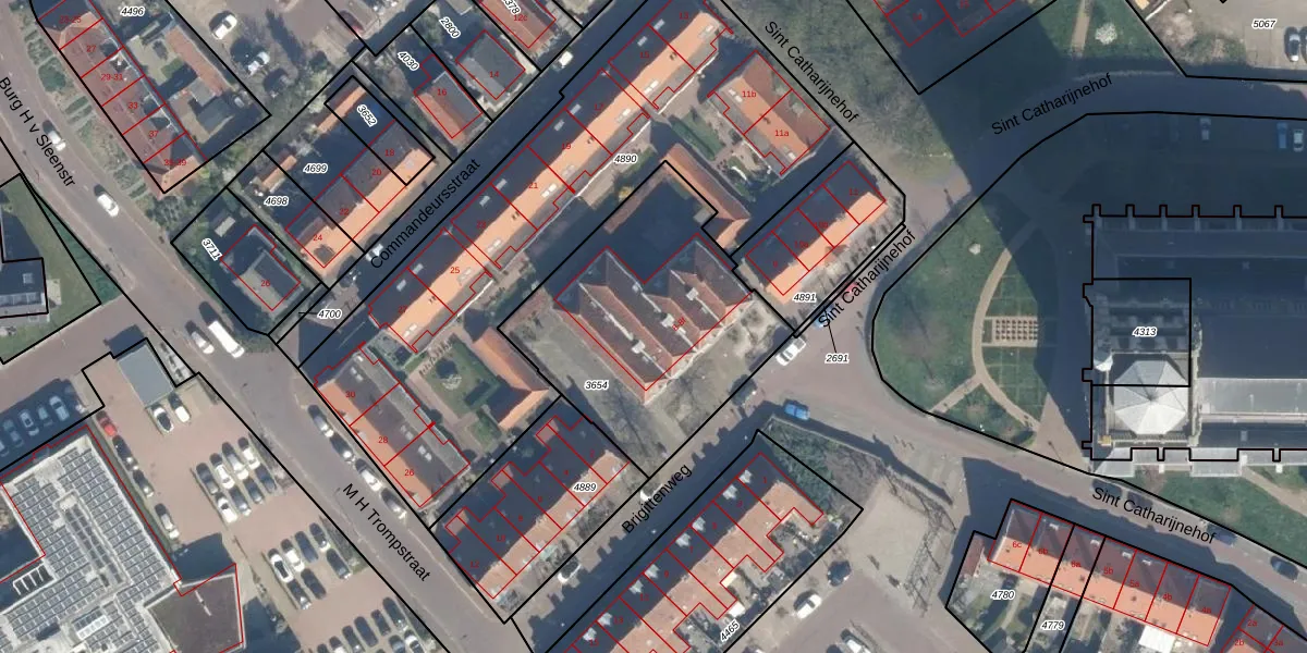 Sint Catharijnehof 8 is gelegen op kadastraal perceel BLE02B3654. Deze kadastrale aanduiding is uniek en wordt gebruikt door het Kadaster om eigendomsrechten en andere zakelijke rechten vast te leggen. Het perceel maakt onderdeel uit van de kadastrale gemeente Brielle.