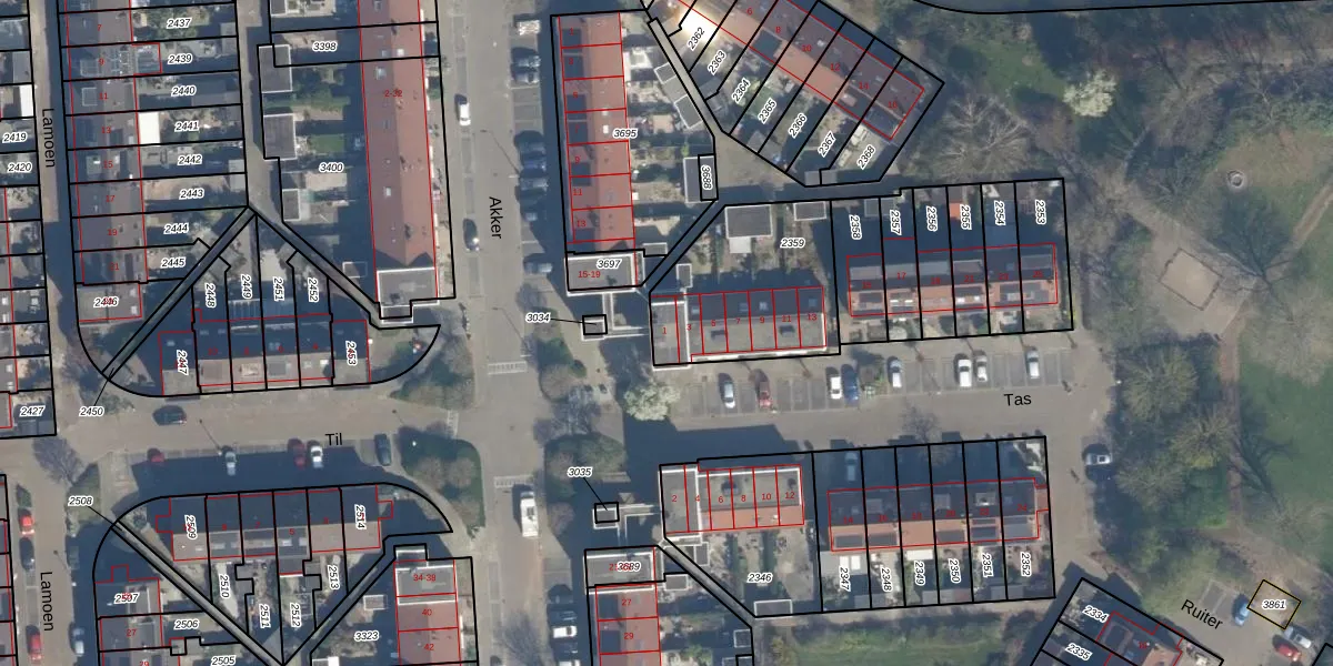 Het perceel waarop Tas 1 staat heeft een oppervlakte van 576 m². Dit is een groot perceel. De perceeloppervlakte wordt geregistreerd door het Kadaster. Gedetailleerde informatie over de maten van dit perceel kunt u vinden in het rapport Kadastrale kaart met maatvoering van Tas 1.