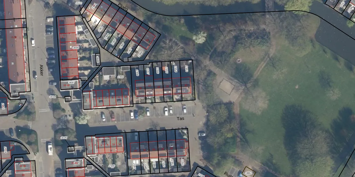 Het perceel waarop Tas 23 staat heeft een oppervlakte van 115 m². Dit is een middelgroot perceel. De perceeloppervlakte wordt geregistreerd door het Kadaster. Gedetailleerde informatie over de maten van dit perceel kunt u vinden in het rapport Kadastrale kaart met maatvoering van Tas 23.