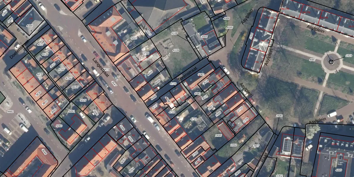 Gebruik de zoekbalk of klik op een perceel voor informatie over de adressen binnen dit perceel.