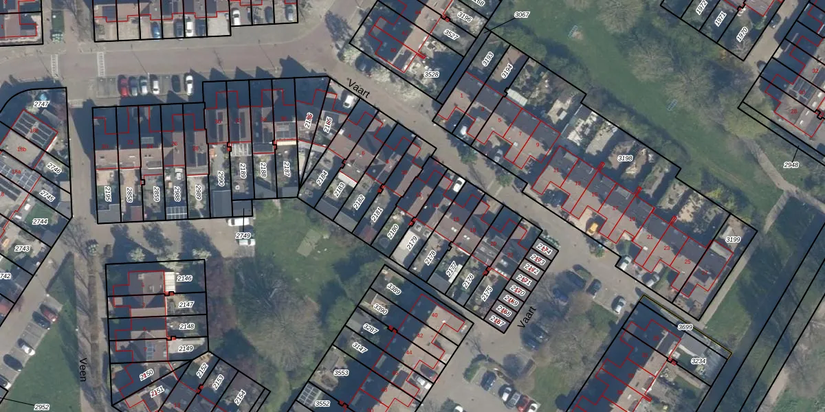 Het perceel waarop Vaart 12 staat heeft een oppervlakte van 140 m². Dit is een middelgroot perceel. De perceeloppervlakte wordt geregistreerd door het Kadaster. Gedetailleerde informatie over de maten van dit perceel kunt u vinden in het rapport Kadastrale kaart met maatvoering van Vaart 12.