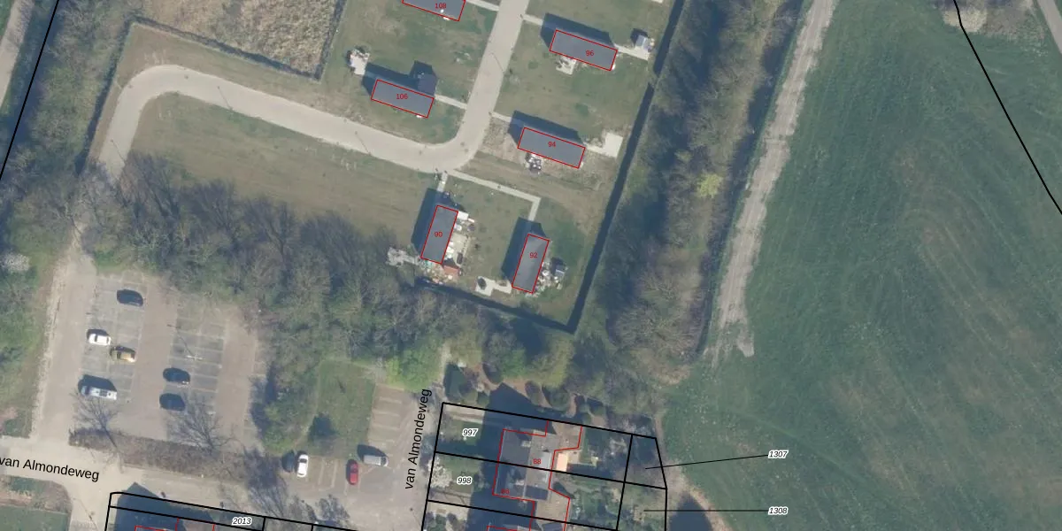 Het perceel waarop van Almondeweg 92 staat heeft een oppervlakte van 9,0 ha. Dit is een zeer groot perceel. De perceeloppervlakte wordt geregistreerd door het Kadaster. Gedetailleerde informatie over de maten van dit perceel kunt u vinden in het rapport Kadastrale kaart met maatvoering van van Almondeweg 92.