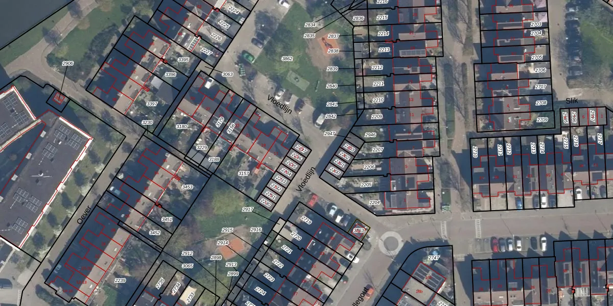 Gebruik de zoekbalk of klik op een perceel voor informatie over de adressen binnen dit perceel.