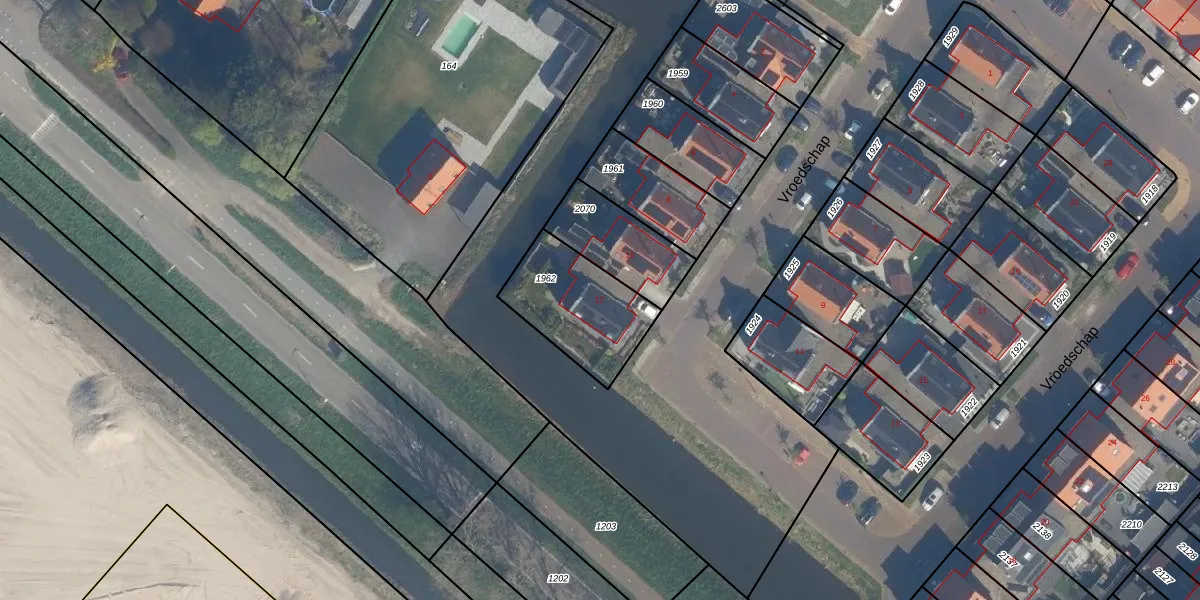 Het perceel waarop Vroedschap 12 staat heeft een oppervlakte van 356 m². Dit is een groot perceel. De perceeloppervlakte wordt geregistreerd door het Kadaster. Gedetailleerde informatie over de maten van dit perceel kunt u vinden in het rapport Kadastrale kaart met maatvoering van Vroedschap 12.