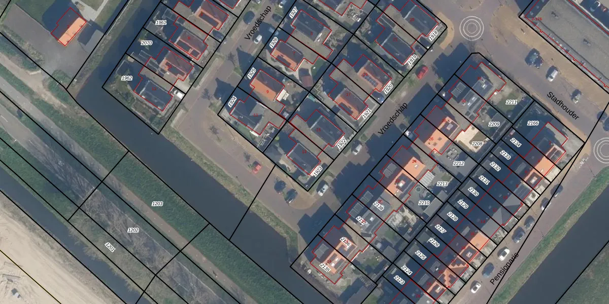 Het perceel waarop Vroedschap 13 staat heeft een oppervlakte van 264 m². Dit is een middelgroot perceel. De perceeloppervlakte wordt geregistreerd door het Kadaster. Gedetailleerde informatie over de maten van dit perceel kunt u vinden in het rapport Kadastrale kaart met maatvoering van Vroedschap 13.