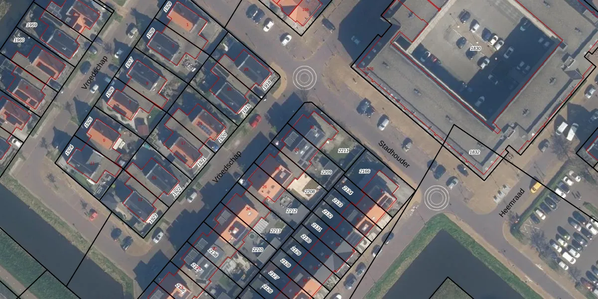Het perceel waarop Vroedschap 30 staat heeft een oppervlakte van 221 m². Dit is een middelgroot perceel. De perceeloppervlakte wordt geregistreerd door het Kadaster. Gedetailleerde informatie over de maten van dit perceel kunt u vinden in het rapport Kadastrale kaart met maatvoering van Vroedschap 30.