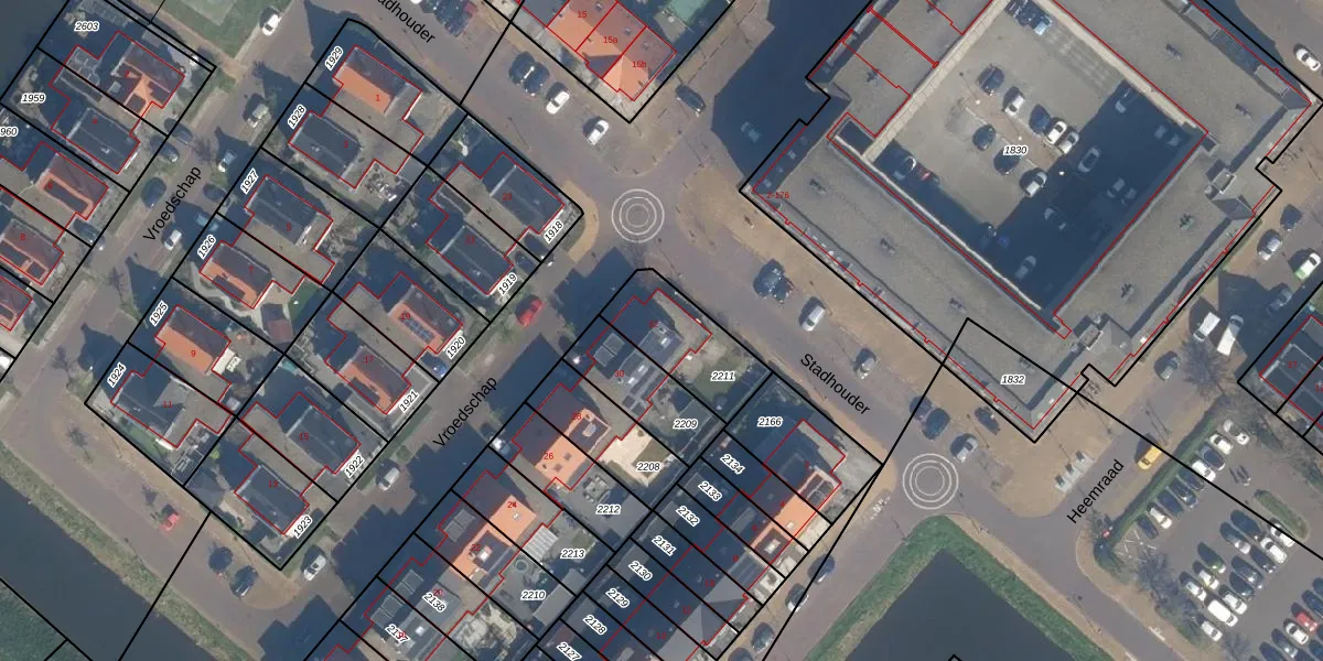 Gebruik de zoekbalk of klik op een perceel voor informatie over de adressen binnen dit perceel.