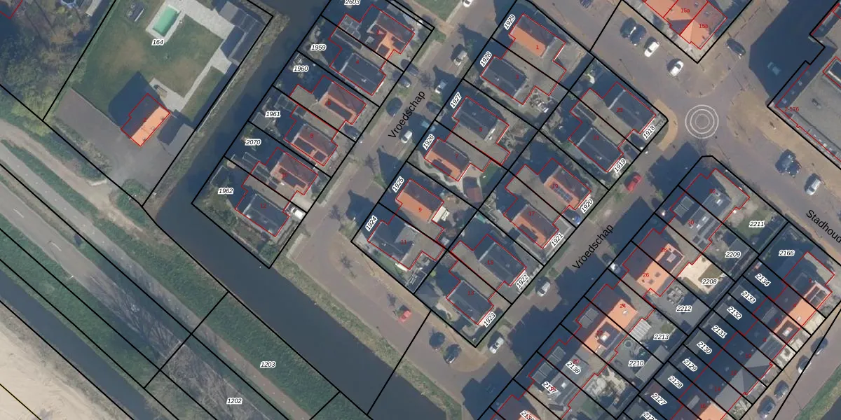 Het perceel waarop Vroedschap 9 staat heeft een oppervlakte van 242 m². Dit is een middelgroot perceel. De perceeloppervlakte wordt geregistreerd door het Kadaster. Gedetailleerde informatie over de maten van dit perceel kunt u vinden in het rapport Kadastrale kaart met maatvoering van Vroedschap 9.