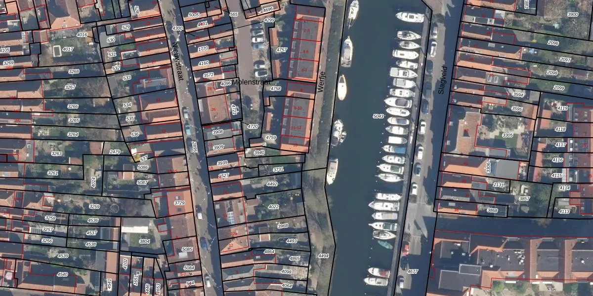 Het perceel waarop Werfje 13 staat heeft een oppervlakte van 301 m². Dit is een groot perceel. De perceeloppervlakte wordt geregistreerd door het Kadaster. Gedetailleerde informatie over de maten van dit perceel kunt u vinden in het rapport Kadastrale kaart met maatvoering van Werfje 13.