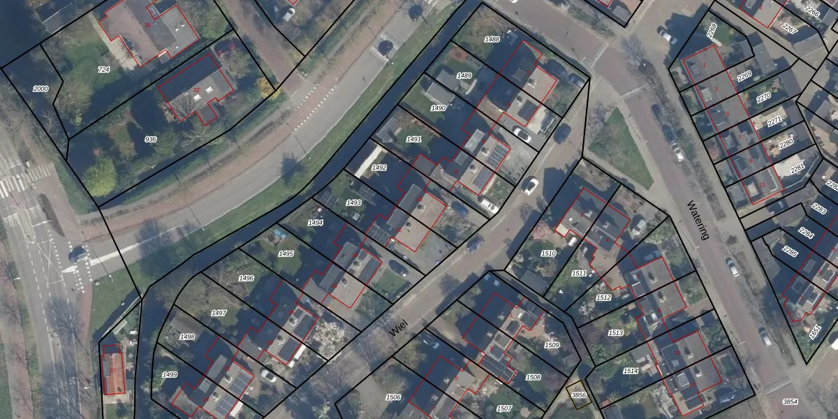 Het perceel waarop Wiel 10 staat heeft een oppervlakte van 340 m². Dit is een groot perceel. De perceeloppervlakte wordt geregistreerd door het Kadaster. Gedetailleerde informatie over de maten van dit perceel kunt u vinden in het rapport Kadastrale kaart met maatvoering van Wiel 10.