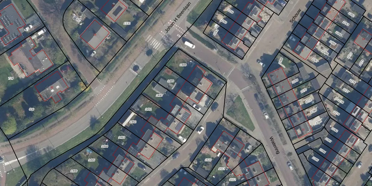 Gebruik de zoekbalk of klik op een perceel voor informatie over de adressen binnen dit perceel.