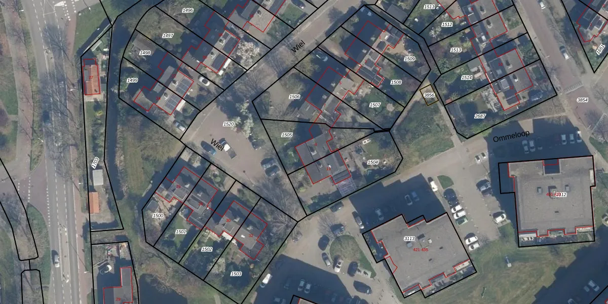 Het perceel waarop Wiel 9 staat heeft een oppervlakte van 341 m². Dit is een groot perceel. De perceeloppervlakte wordt geregistreerd door het Kadaster. Gedetailleerde informatie over de maten van dit perceel kunt u vinden in het rapport Kadastrale kaart met maatvoering van Wiel 9.