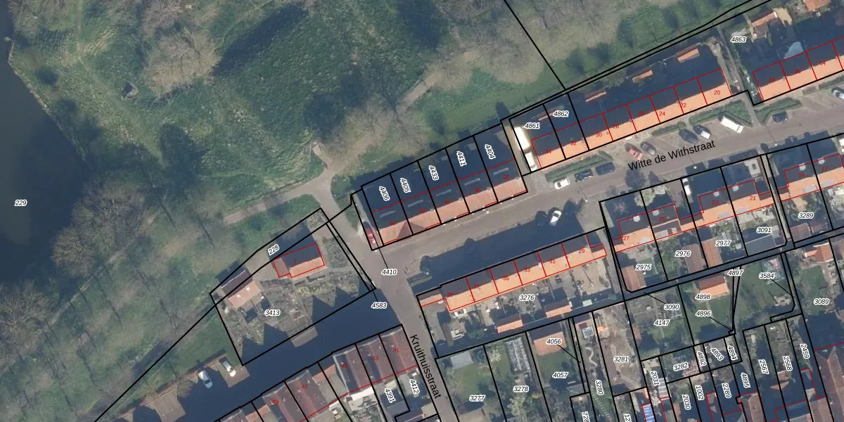 Gebruik de zoekbalk of klik op een perceel voor informatie over de adressen binnen dit perceel.