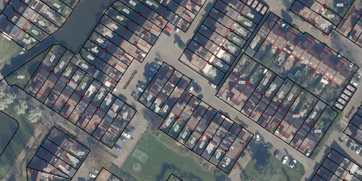 Gebruik de zoekbalk of klik op een perceel voor informatie over de adressen binnen dit perceel.